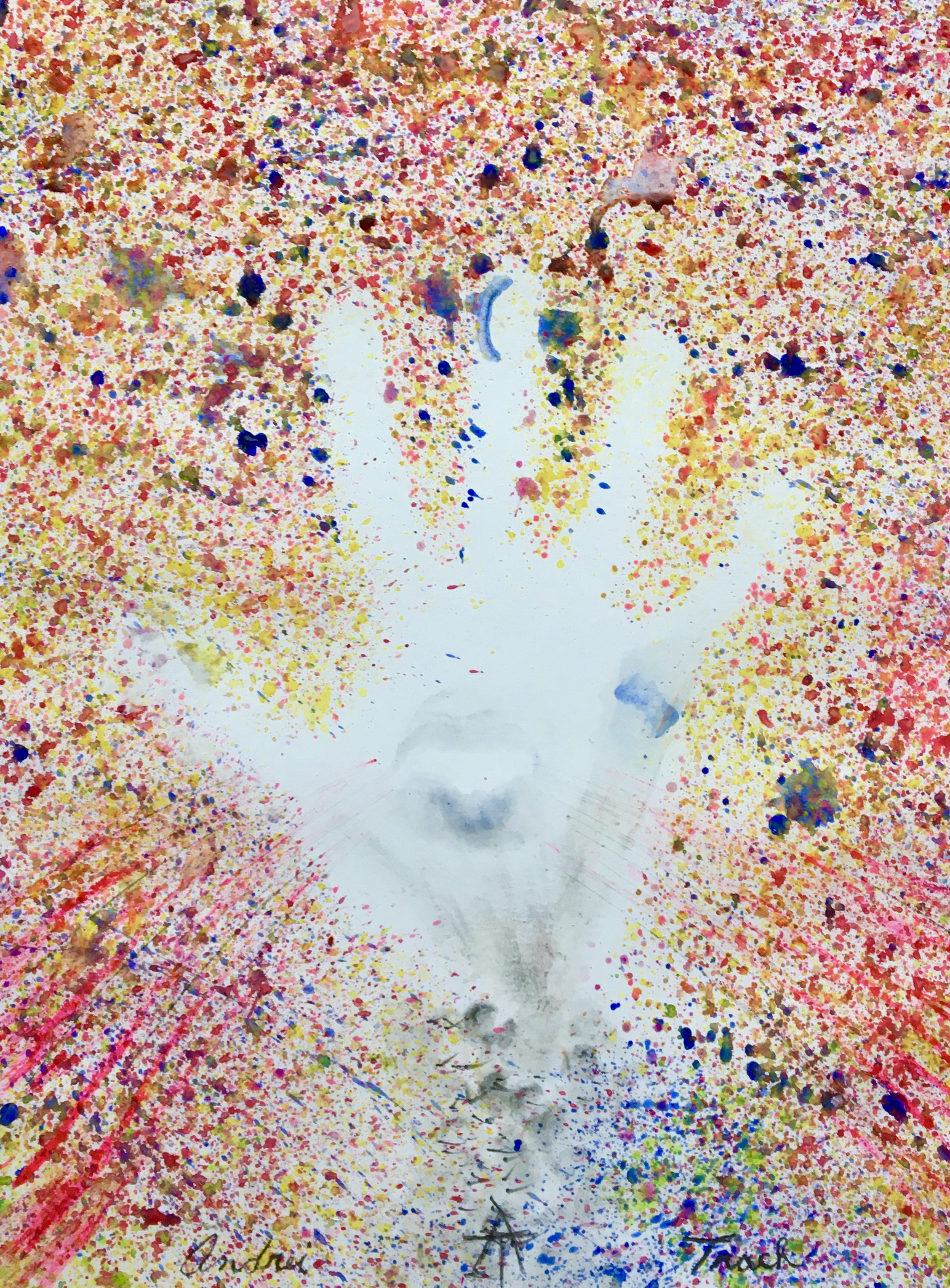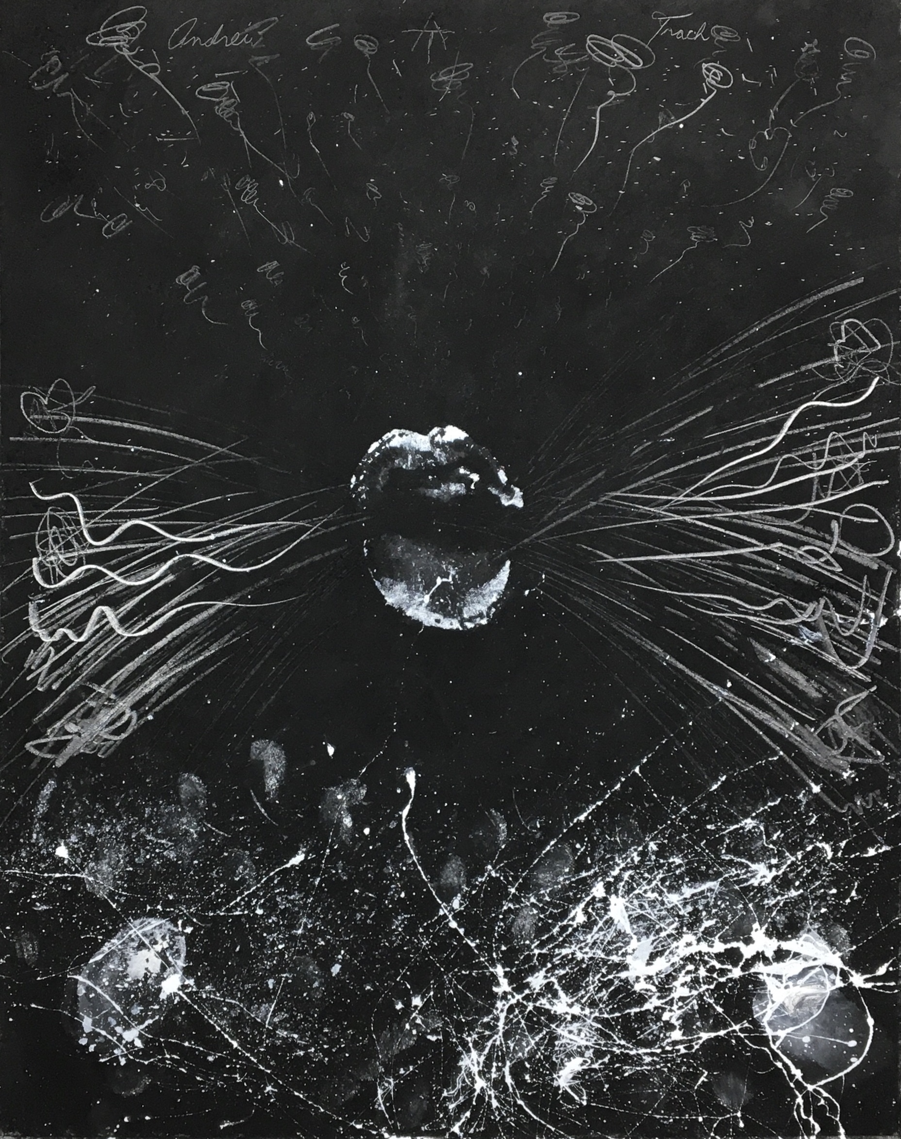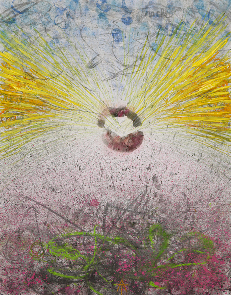 acrylic, tempera, watercolor, charcoal and graphite on paper