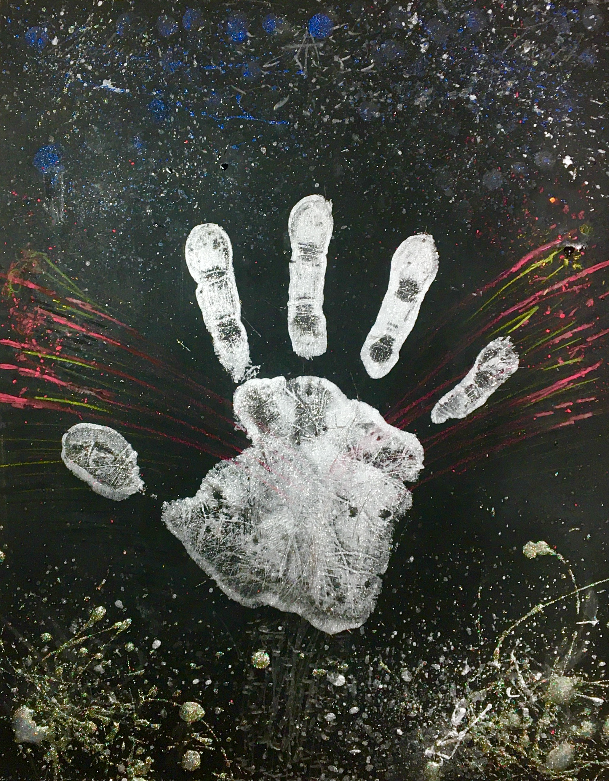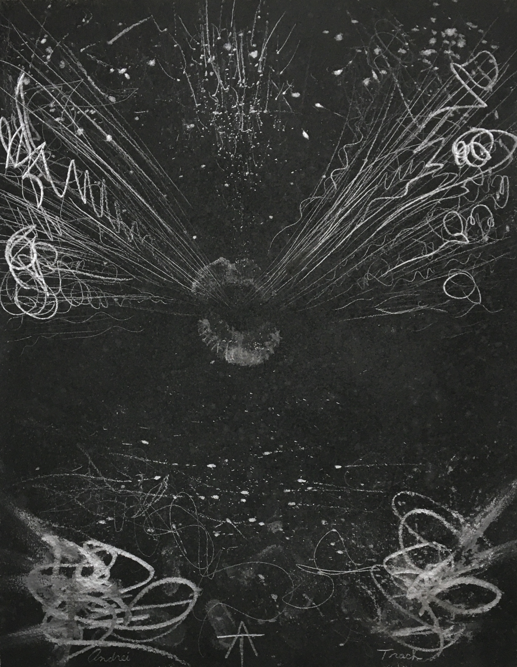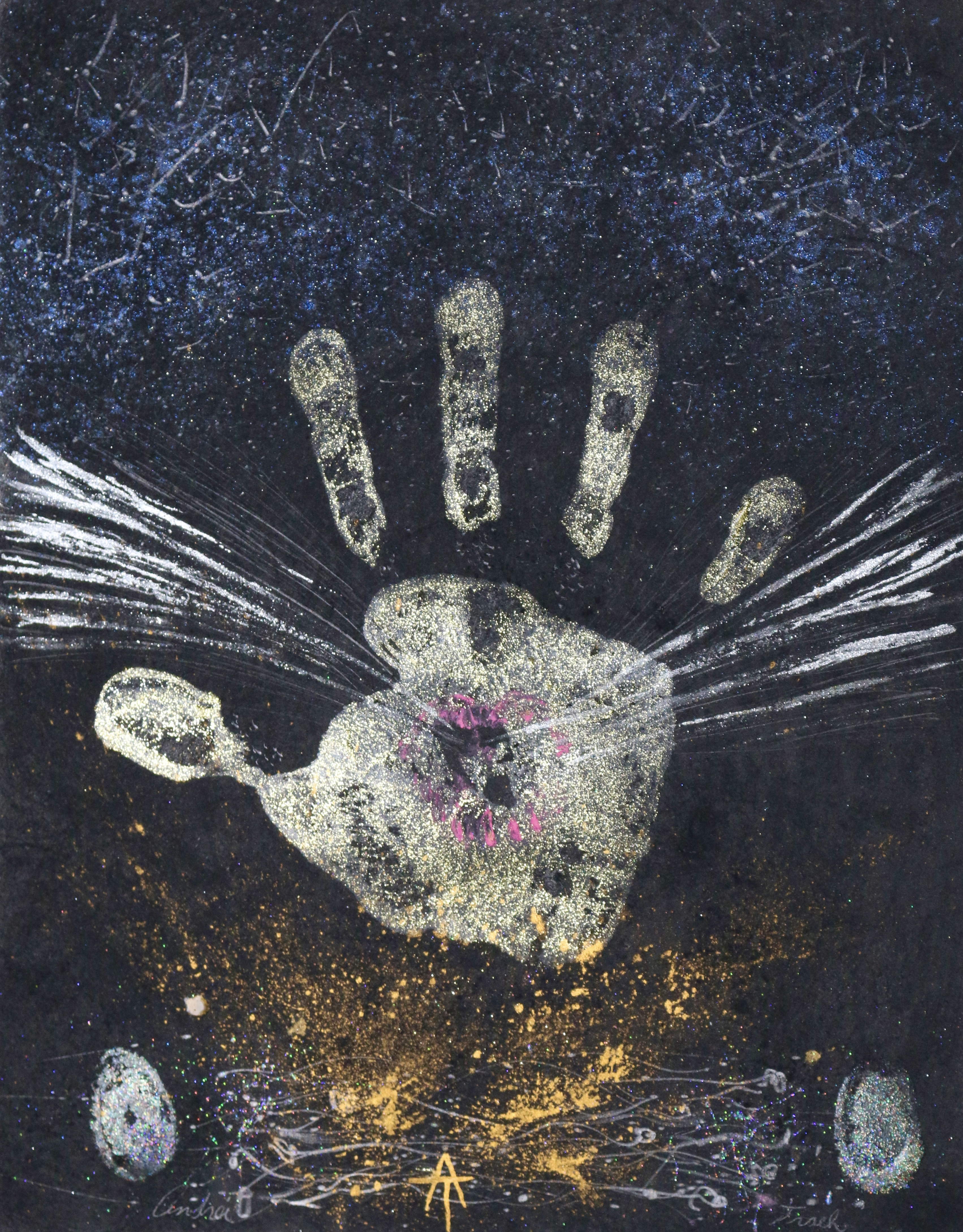 acrylic, tempera, watercolor, charcoal and graphite on paper