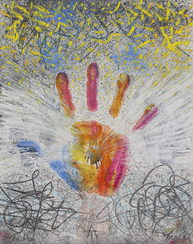 soft pastel, graphite, acrylic, color pencil, and watercolor on paper
